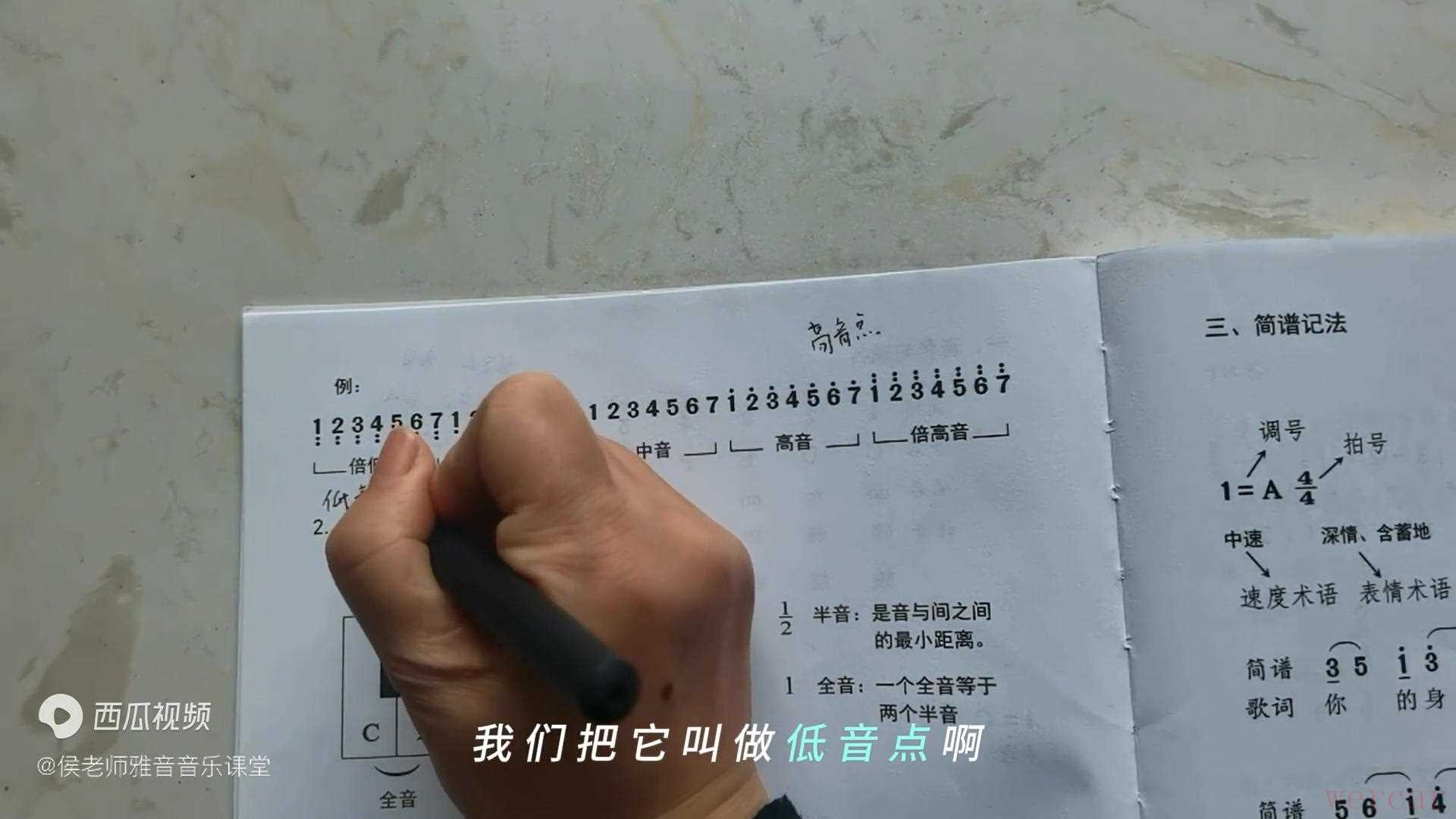 所以因此我们就有了高音点和低音点,上面的点叫做高音点,下面的点叫做低音点。高音点和低音点都是这种圆点,都是这种原点,它分别记录在音符的上方和下方的位置,可以让简谱科学地记录下更多不同的音。