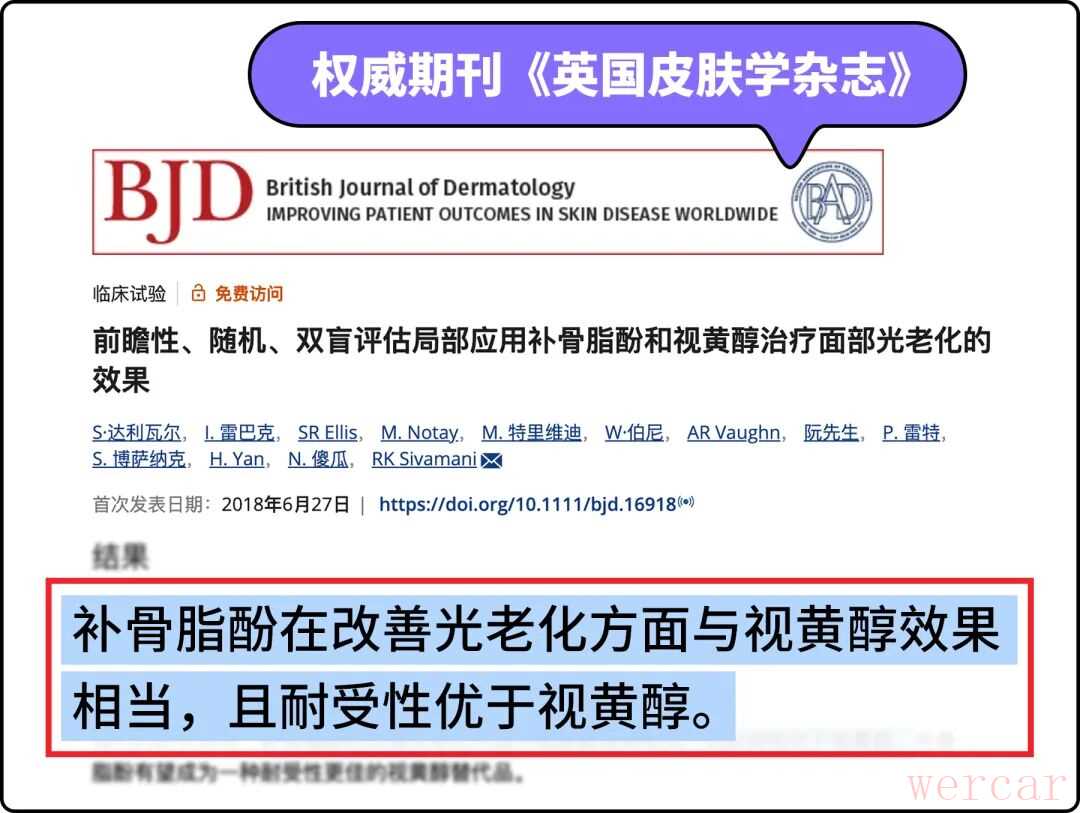 补骨脂酚——权威期刊《英国皮肤学杂志》认证的类 A 醇植物成分,拥有和 A 醇类似的淡纹、减轻色素沉着效果,但又比 A 醇更温和。