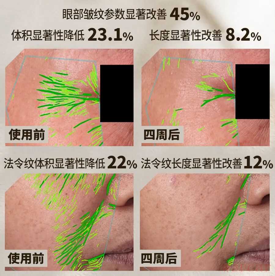 有多厉害呢,咱直接看人体功效试验报告,使用晚霜 4 周后,受试者——
