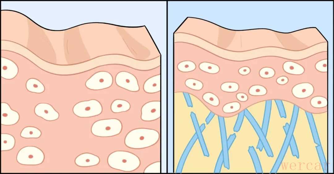 内里,是胶原蛋白、透明质酸集体「塌方」