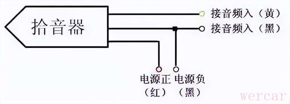 此类接线比较简单,普通的拾音器一般有三根线,一般是信号线、电源正极,电源负极。