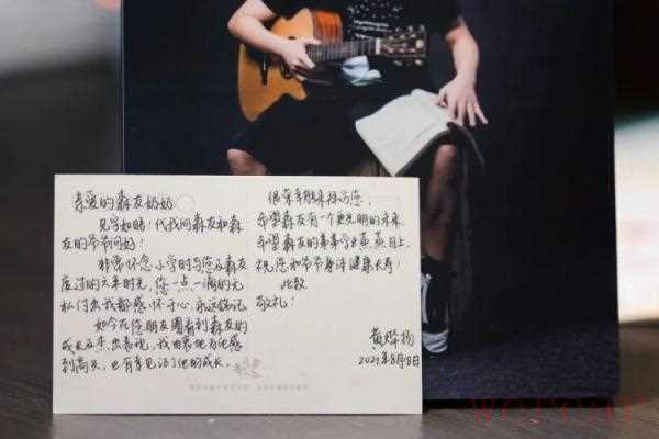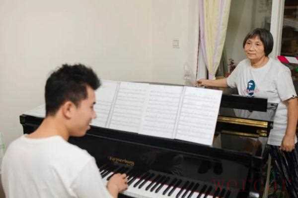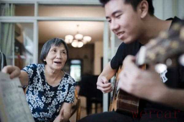 8月25日,郑森友的奶奶徐平拿着吉他谱协助孙子练习吉他弹唱。