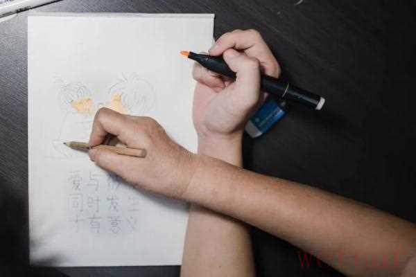 森友临摹小林漫画,奶奶用铅笔和他一起勾勒人物线条。