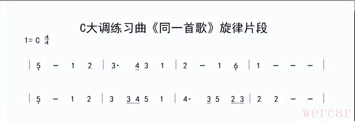 最后,我设计了一首C大调四四拍音阶练习曲《同一首歌旋律片段》,在吉他五个不同的音阶指型:mi、sol、la、si、re音阶指型里弹奏同样的旋律。大家也可以找其他的C大调音阶练习曲,用同样的旋律在五个不同的音阶指型里弹奏,去熟悉不同音阶指型里的音阶分布。