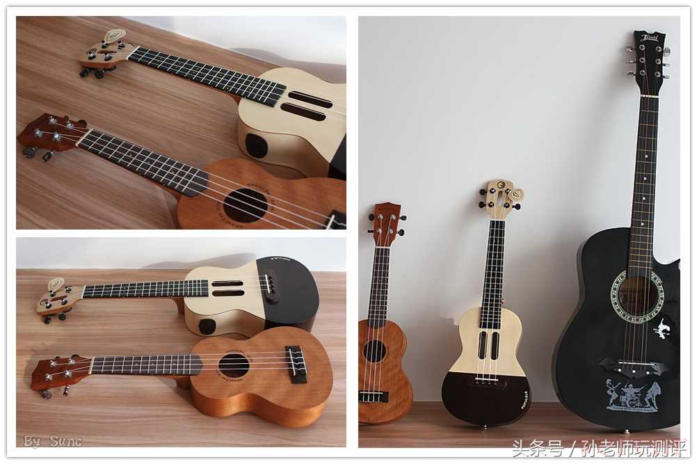 做一个小小的比较,从我个人的角度来说,吉他的音色音域以及表现的能力都远胜于尤克里里,但是起步的难度要比尤克里里大很多,建议新手可以先学习尤克里里,毕竟价格低一些,好学一些,短时间内会有较明显的成果。尤克里里又有很多不同的尺寸,就像我手边的这一把是最小的21寸,更适合儿童学习使用,音域较窄。23寸的POPULELE兼具弹唱和独奏,确实是新手上路时一个不错的选择。