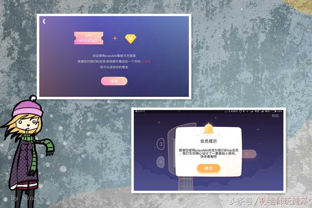 直接在网上下载POPULELE配套的APP,通过蓝牙连接后,即赠送一个月的VIP会员服务,但是到期,如需使用会员服务则需要花钱购买。如果认真练习,估计一个月应该能玩转本款软件里的游戏和歌曲了。对于初学者,拿到琴的第一件事就是调单,由于是尼龙弦,每一次使用前都要校准一下音准,VIP会员服务就包括了调音器的功能。后期也可以通过购买调音器来实现调音功能。