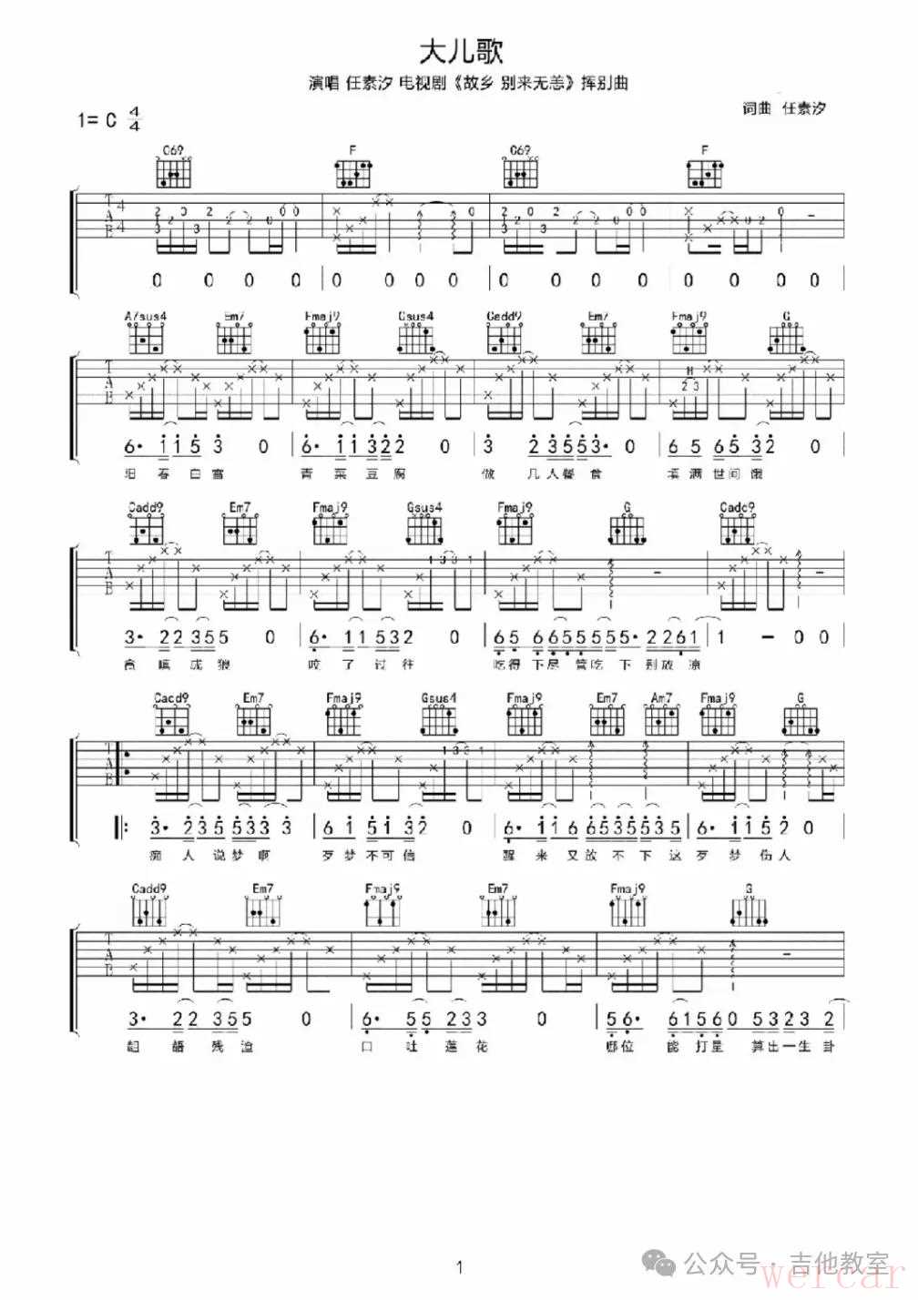 8. 《大儿歌》吉他谱