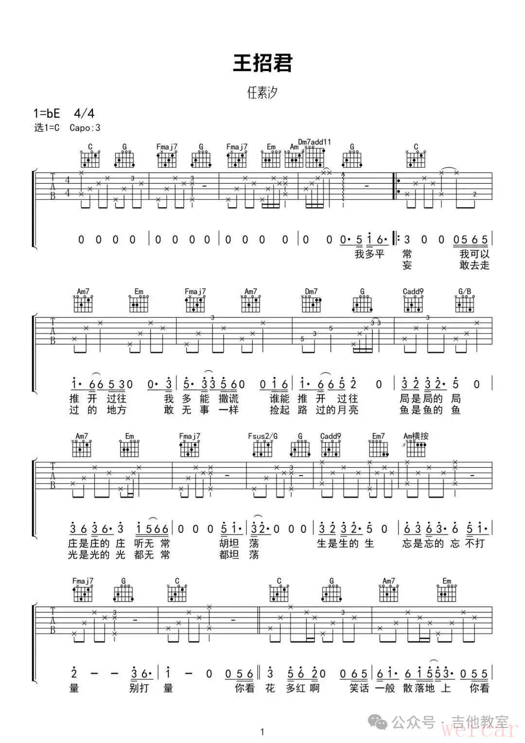 《王昭君》吉他谱