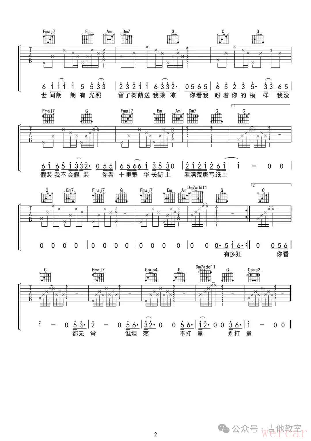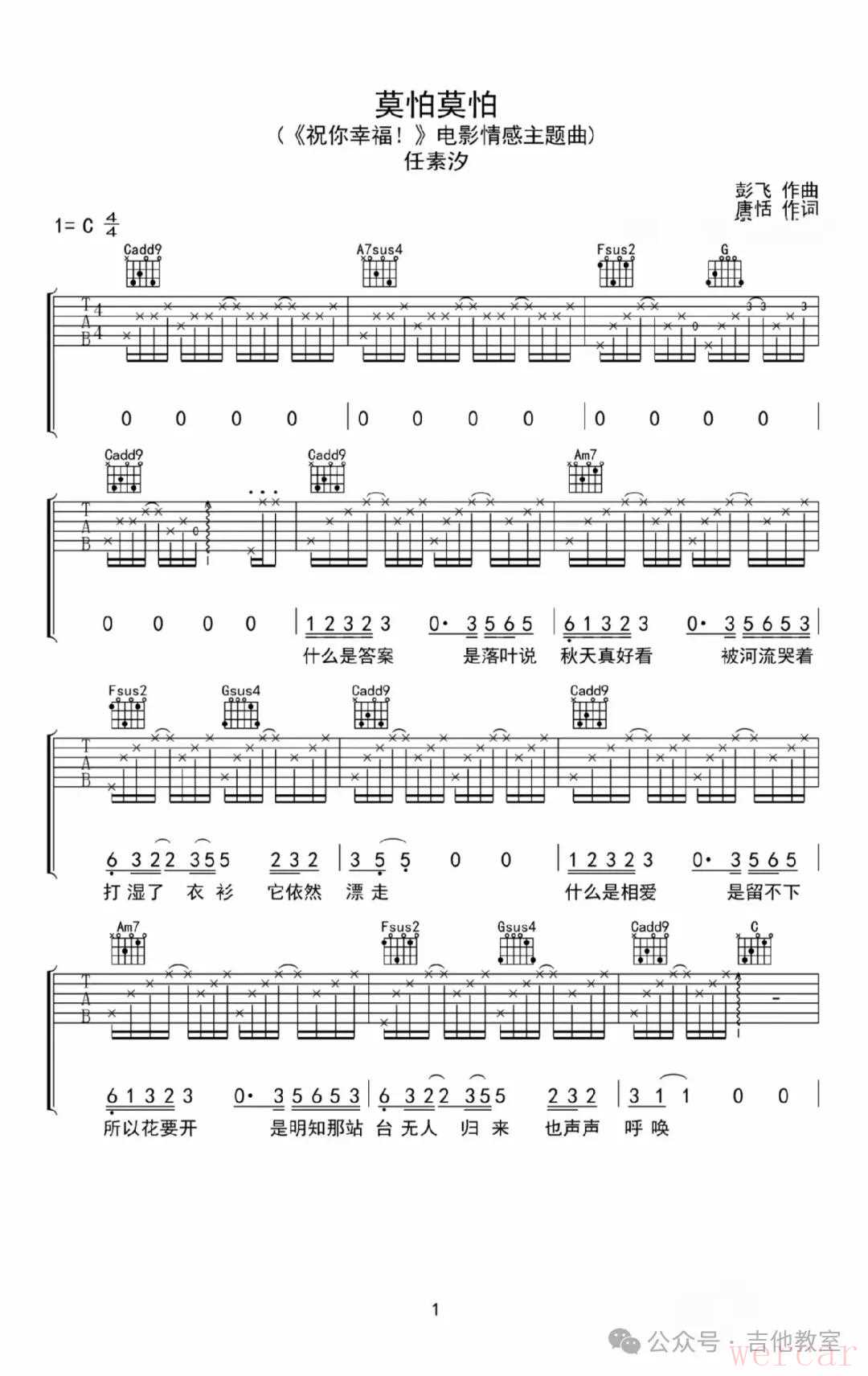 《莫怕莫怕》吉他谱
