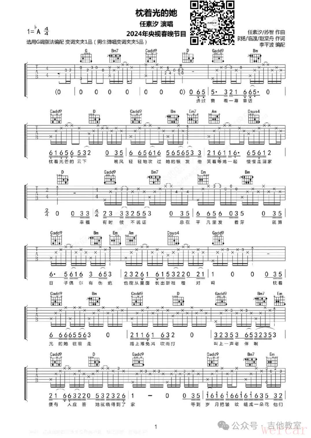 任素汐是一位非常优秀的歌手,她的歌曲深受广大听众的喜爱。以下是她10首经典吉他弹唱歌曲,并附有吉他谱: