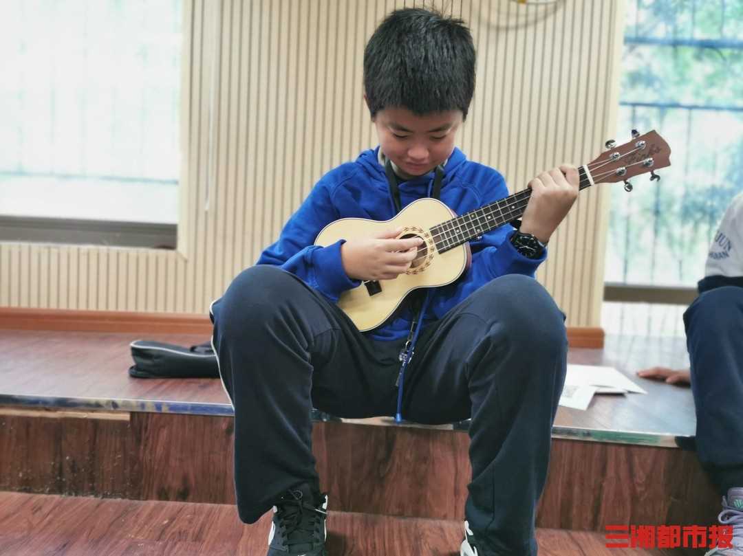 三湘都市报·新湖南客户端10月24日讯(全媒体记者 黄京)阳光灿烂的校园,孩子们在老师的指导下,拨动着尤克里里的琴弦,仿佛演绎着电影《音乐之声》的画面……这是10月23日,记者在长沙市长郡双语实验中学周末课后服务课堂见到的场景。“双减”下的周末去哪儿?为了解决这个不少家长十分关注的问题,该校在长沙中学率先推出了周末课后服务,为初一年级学生开设了16门艺体课程,让大家在校园里轻松度周末。根据我省即将下发的《关于进一步做好中小学课后服务工作的暂行办法》,将逐步推动学校课后服务在2021年秋季学期实现全覆盖。
