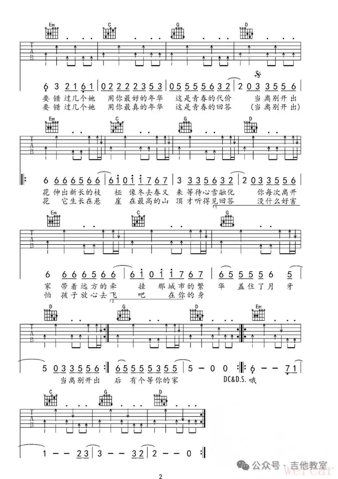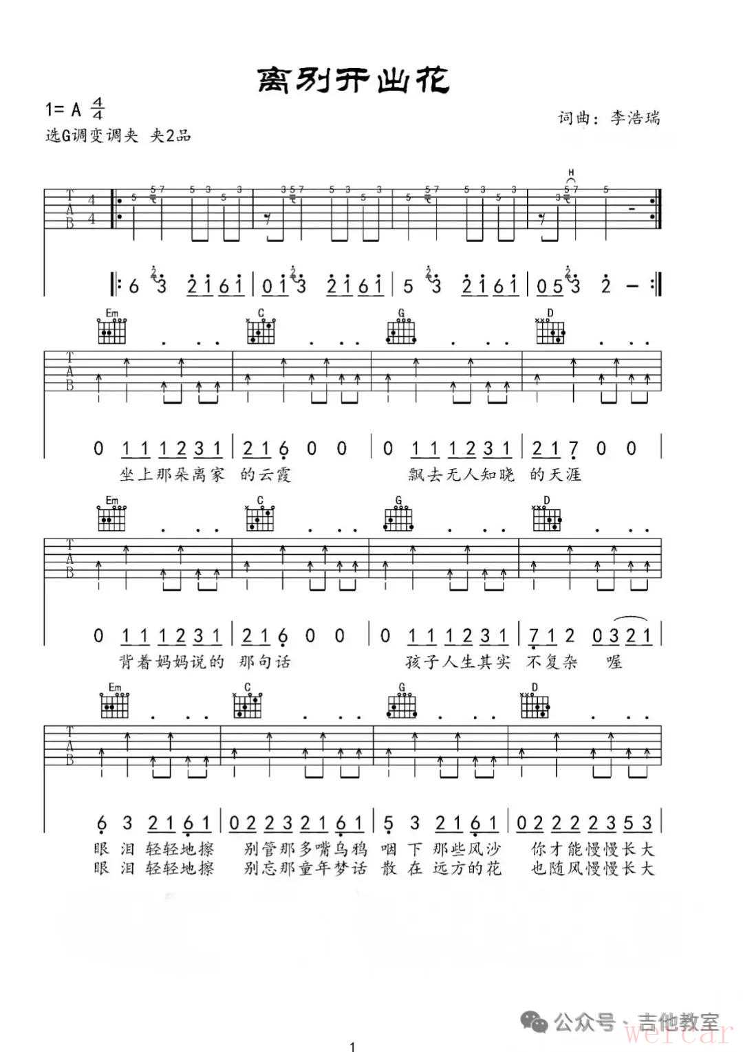 《离别开出花》吉他谱
