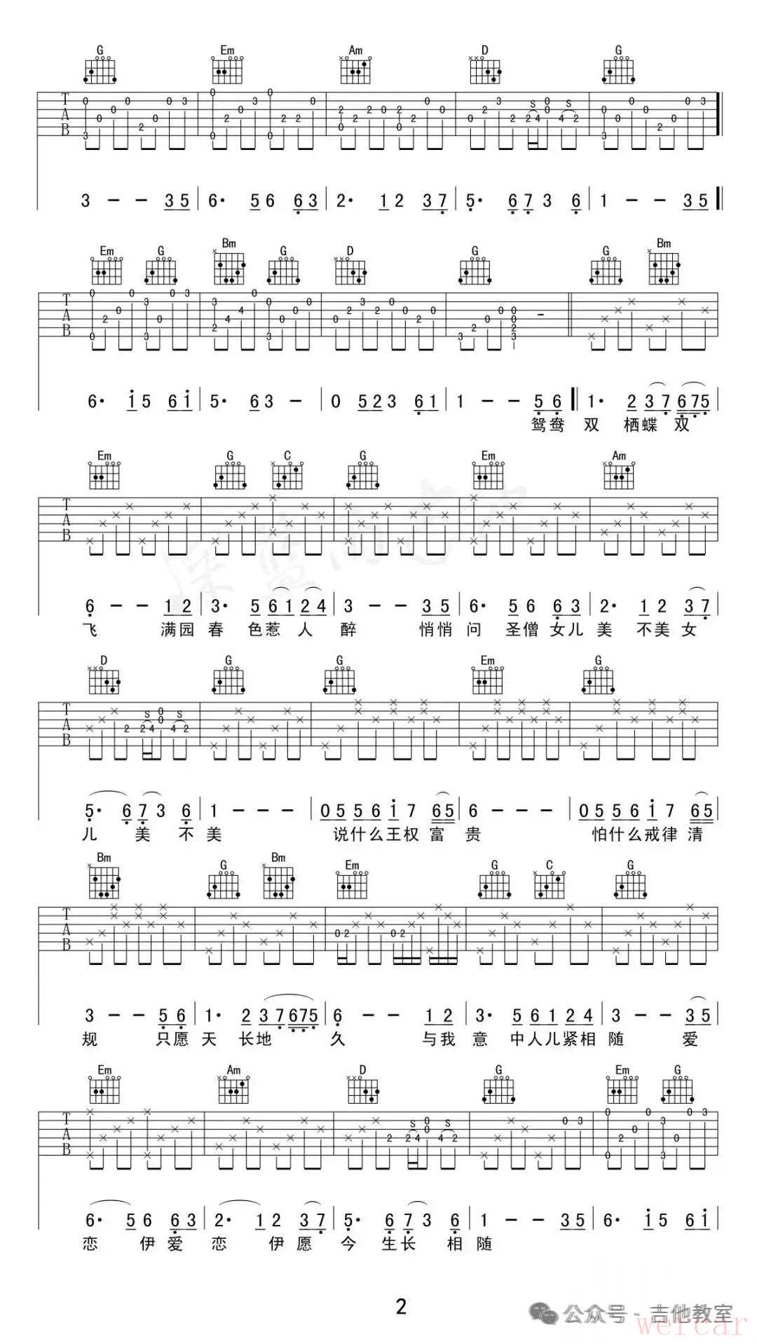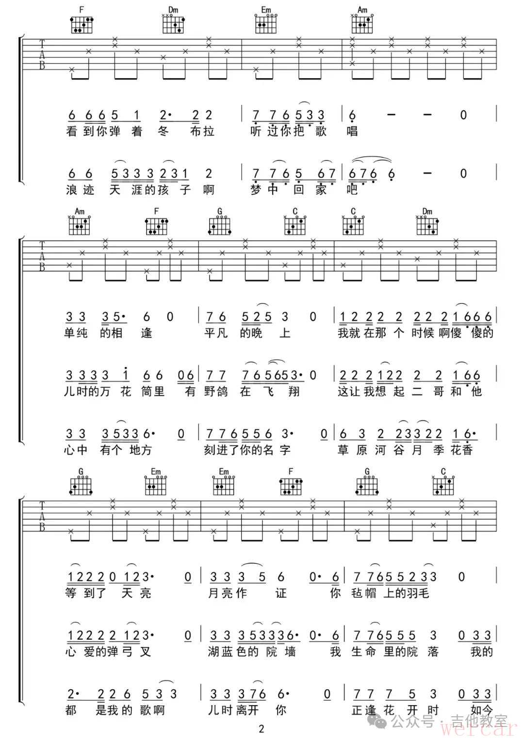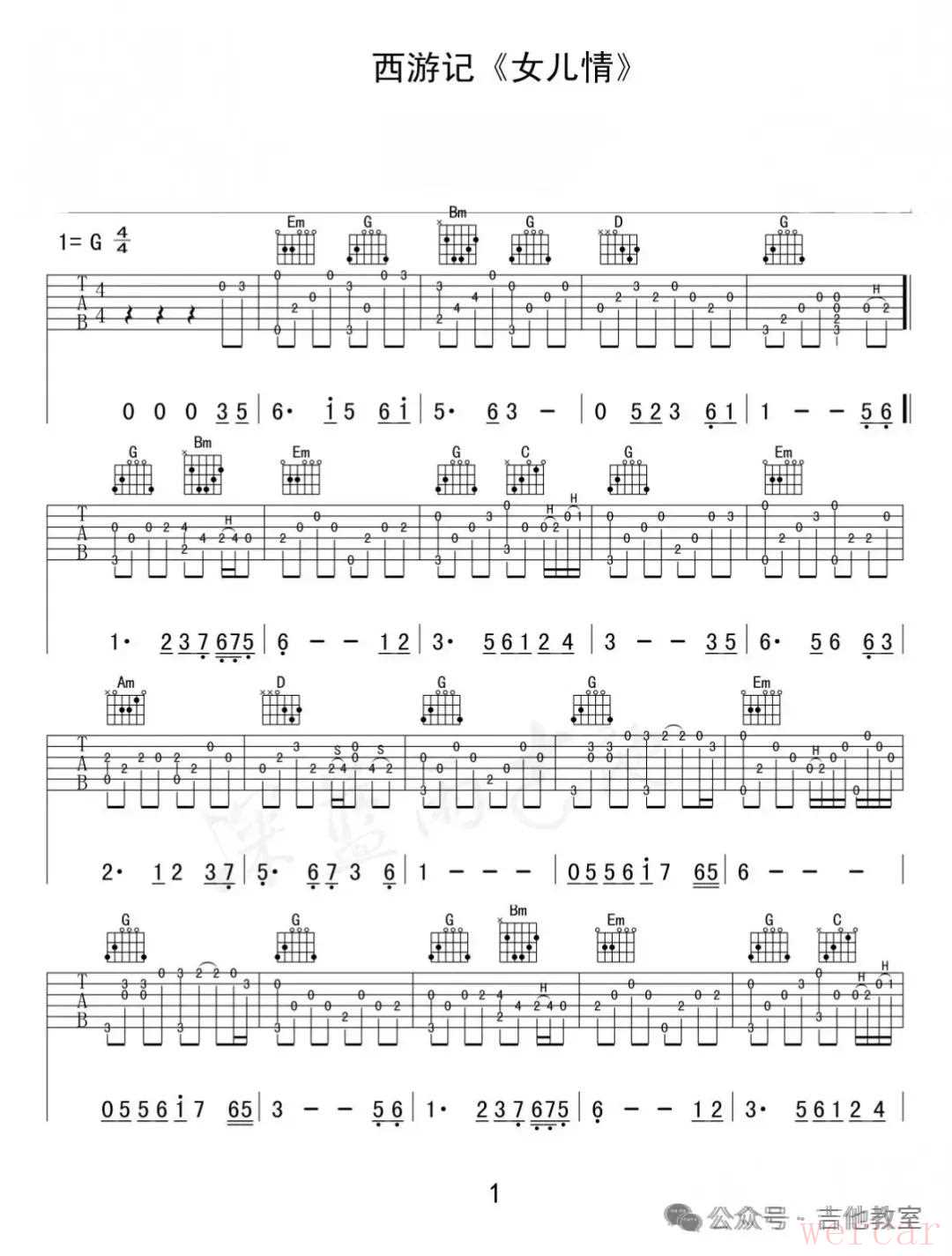 《女儿情》吉他谱
