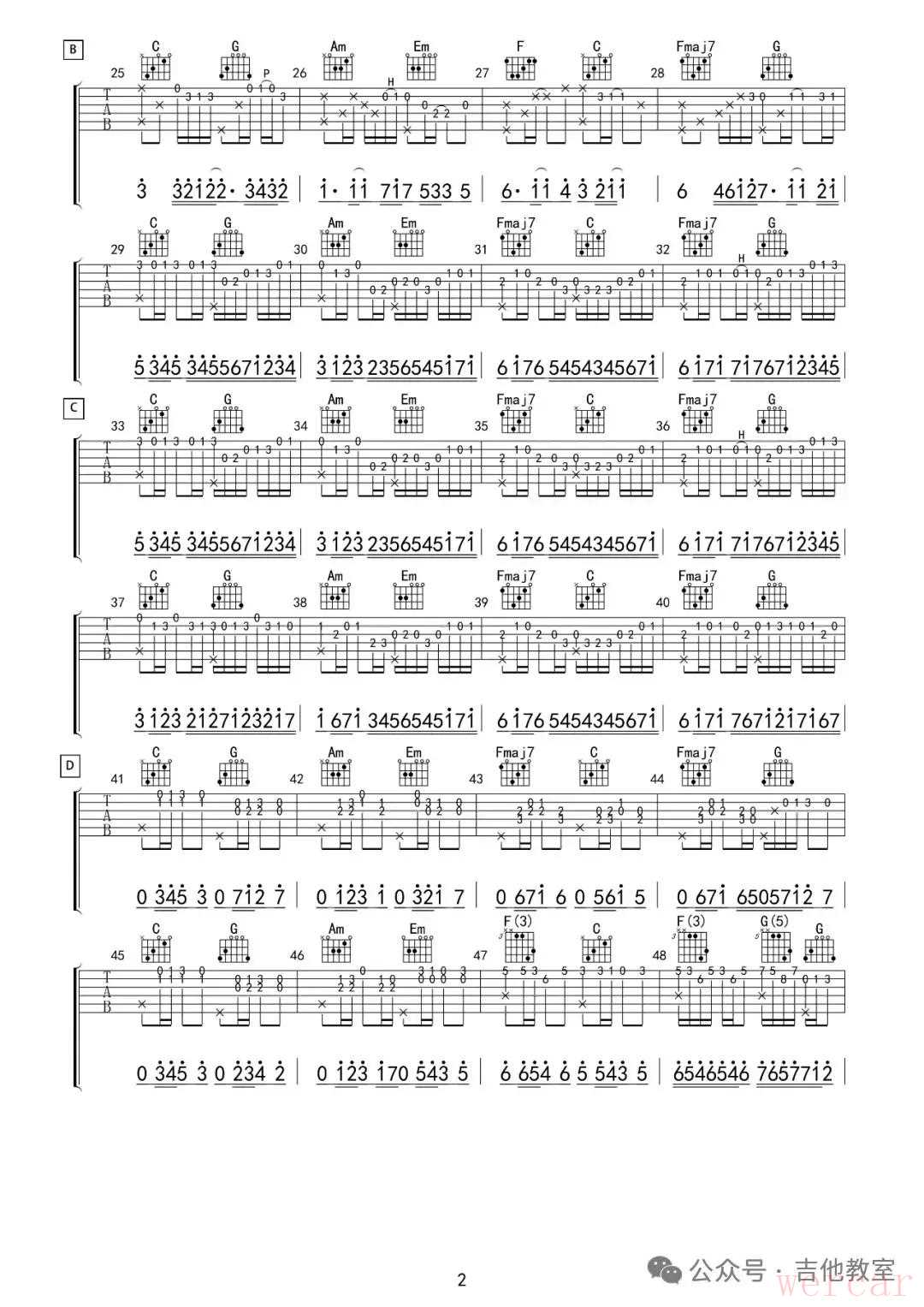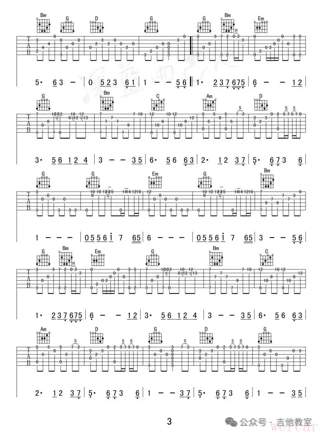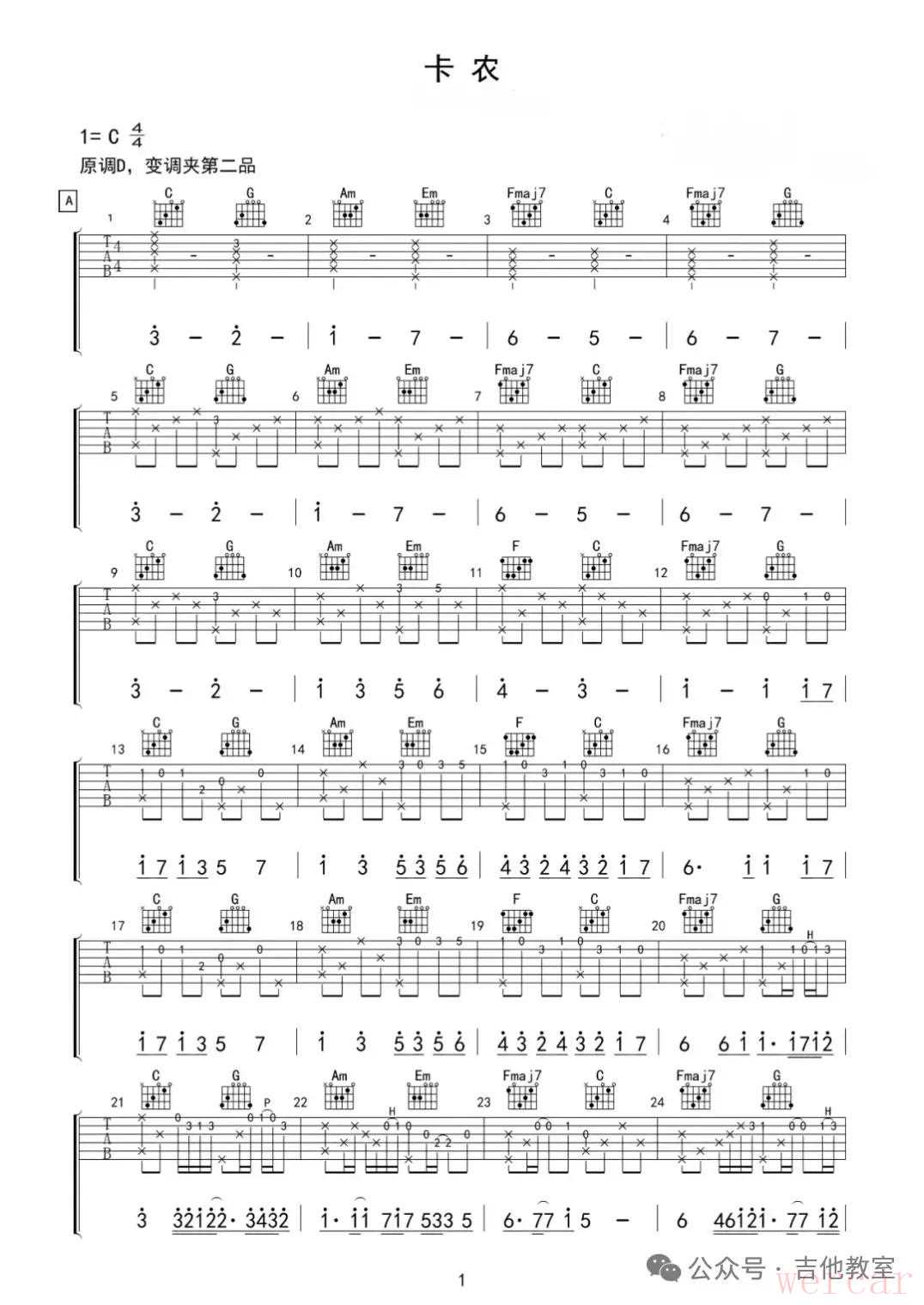 《卡农》吉他谱