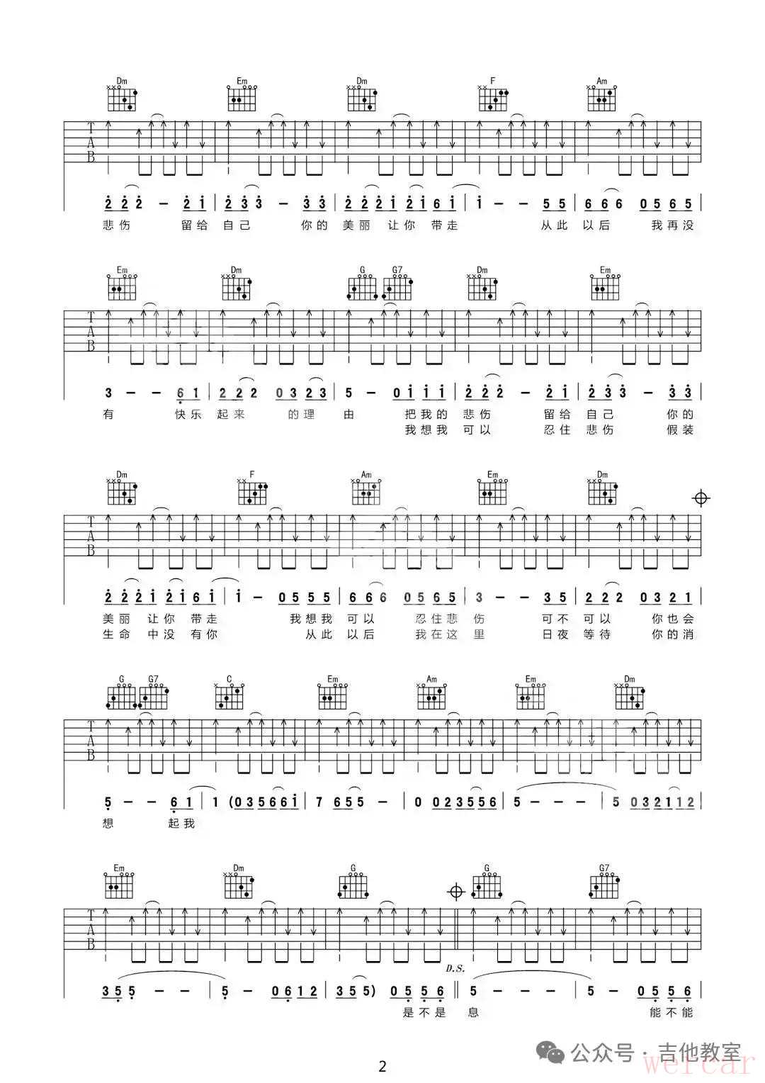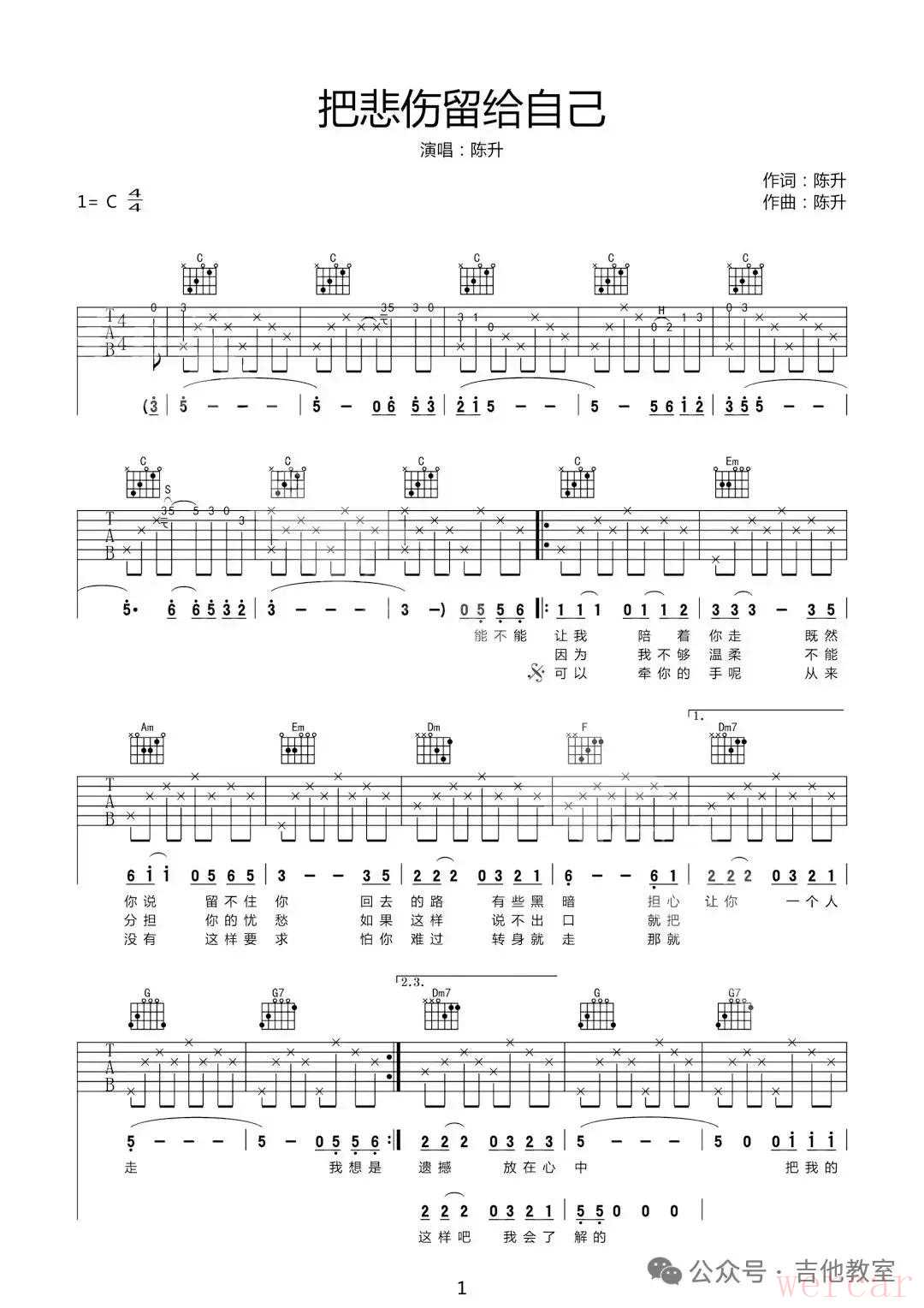 《把悲伤留给自己》吉他谱