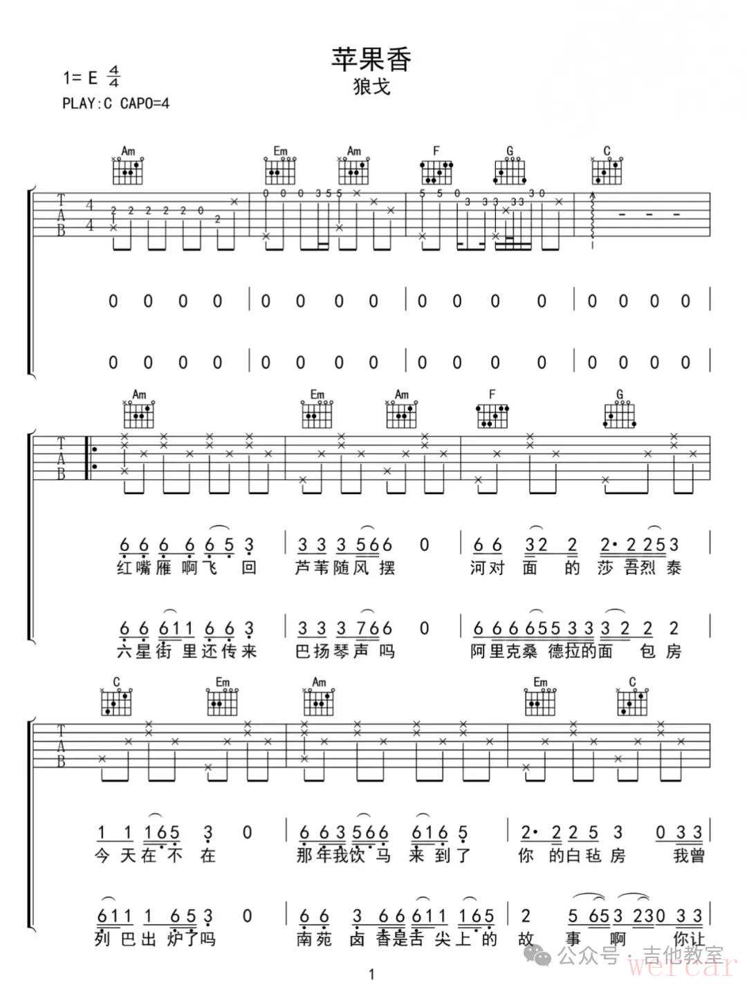 《苹果香》吉他谱