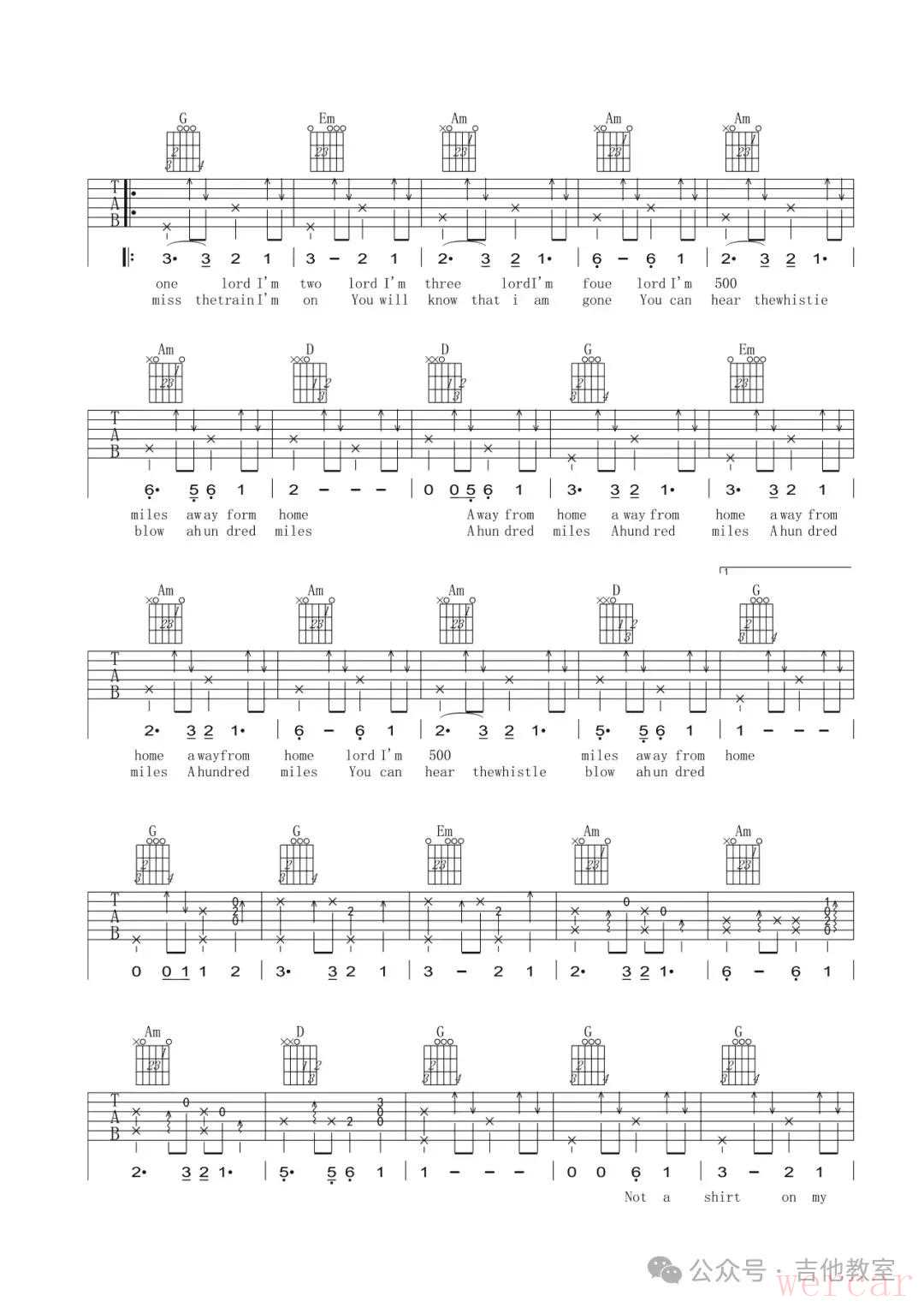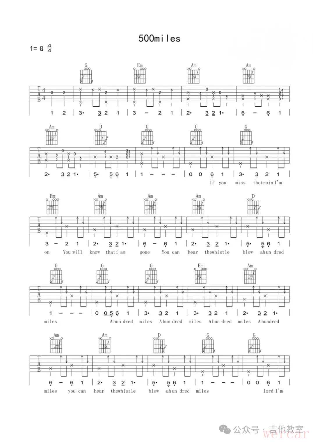 《500 Miles》吉他谱