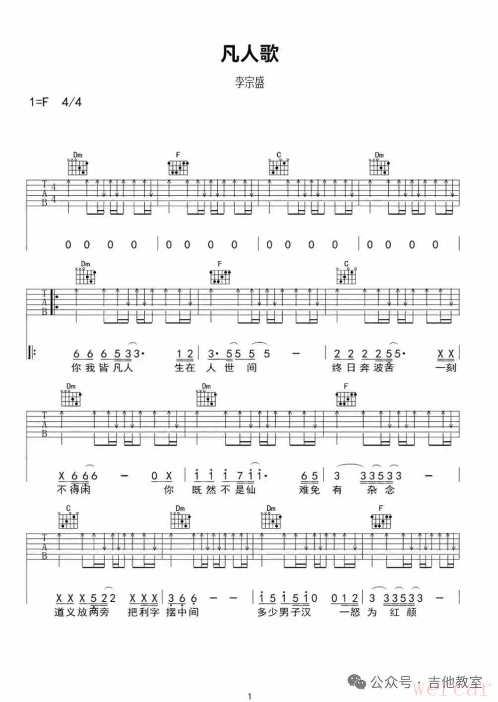 《凡人歌》吉他谱
