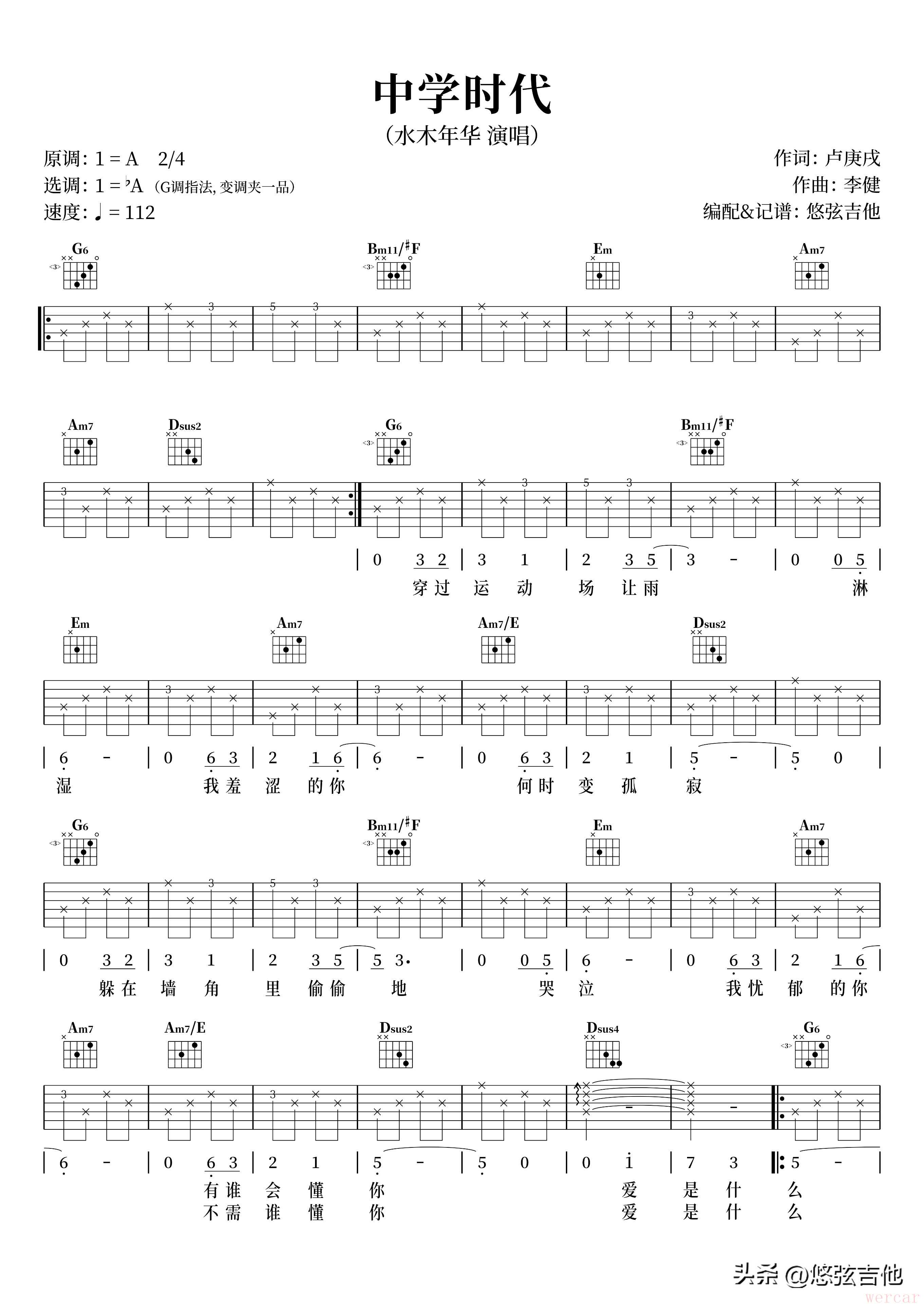 中学时代吉他弹唱曲谱大放送,青春旋律,温暖分享