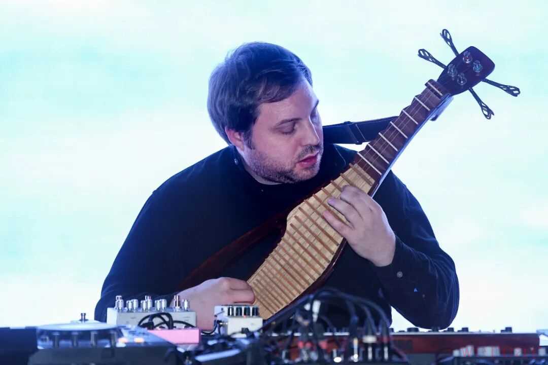 thruoutin使用了软件与硬件相结合的方式,营造出层次丰富、沉浸式的声音氛围。在软件部分,他使用了Ableton Live 12 和 Push 2 MIDI 控制器来触发合成器铺底与低频,并将这些声音录制到磁带后再进行数字化处理,以获得更温暖、具有质感的音色。在硬件部分,他使用了电琵琶,并通过多块效果器添加混响、延迟、循环及细微的调制效果。除了弦乐,他还使用了 Korg Minilogue 合成器,用于补充更多的主音、持续音与低频。所有乐器信号都汇入 Mackie 调音台,而电脑则通过 SSL 2+ 音频接口输出声音。整体配置在现场自然融合有机与电子元素,呈现出既具即兴性又经过精细雕琢的表演。