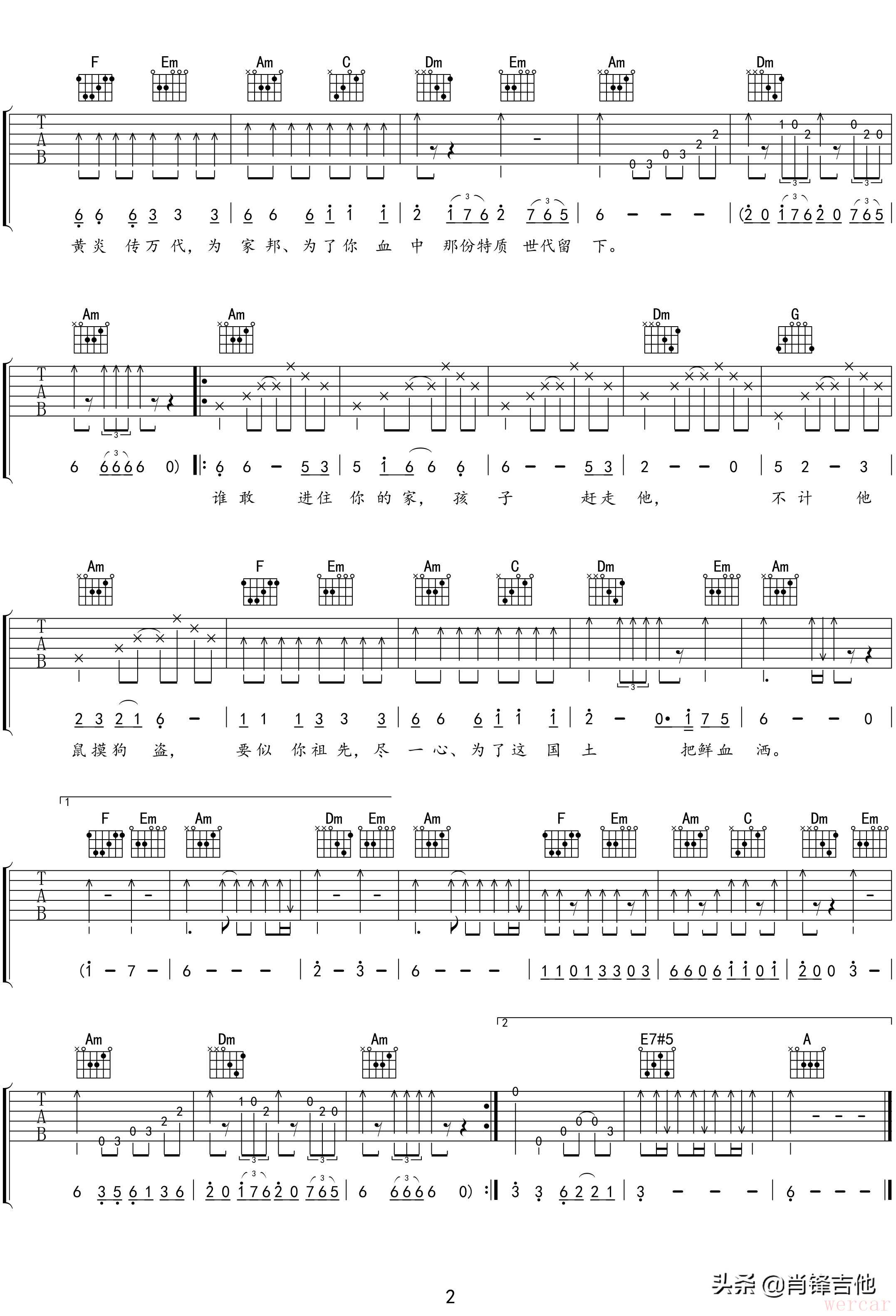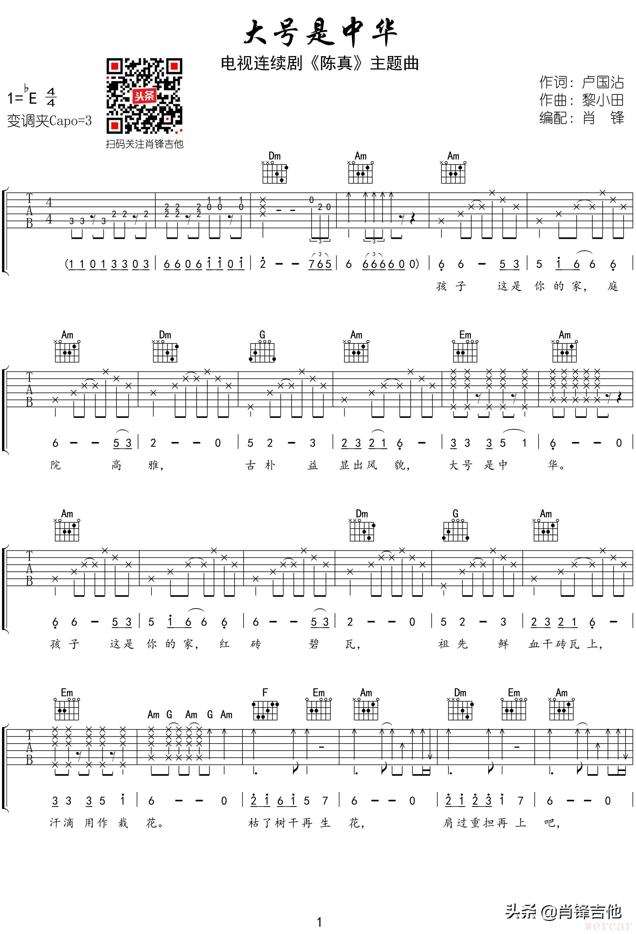 我们来分析一下如何为《大号是中华》这样的歌曲编配吉他伴奏,使其听起来生动有趣,而不是呆板乏味。