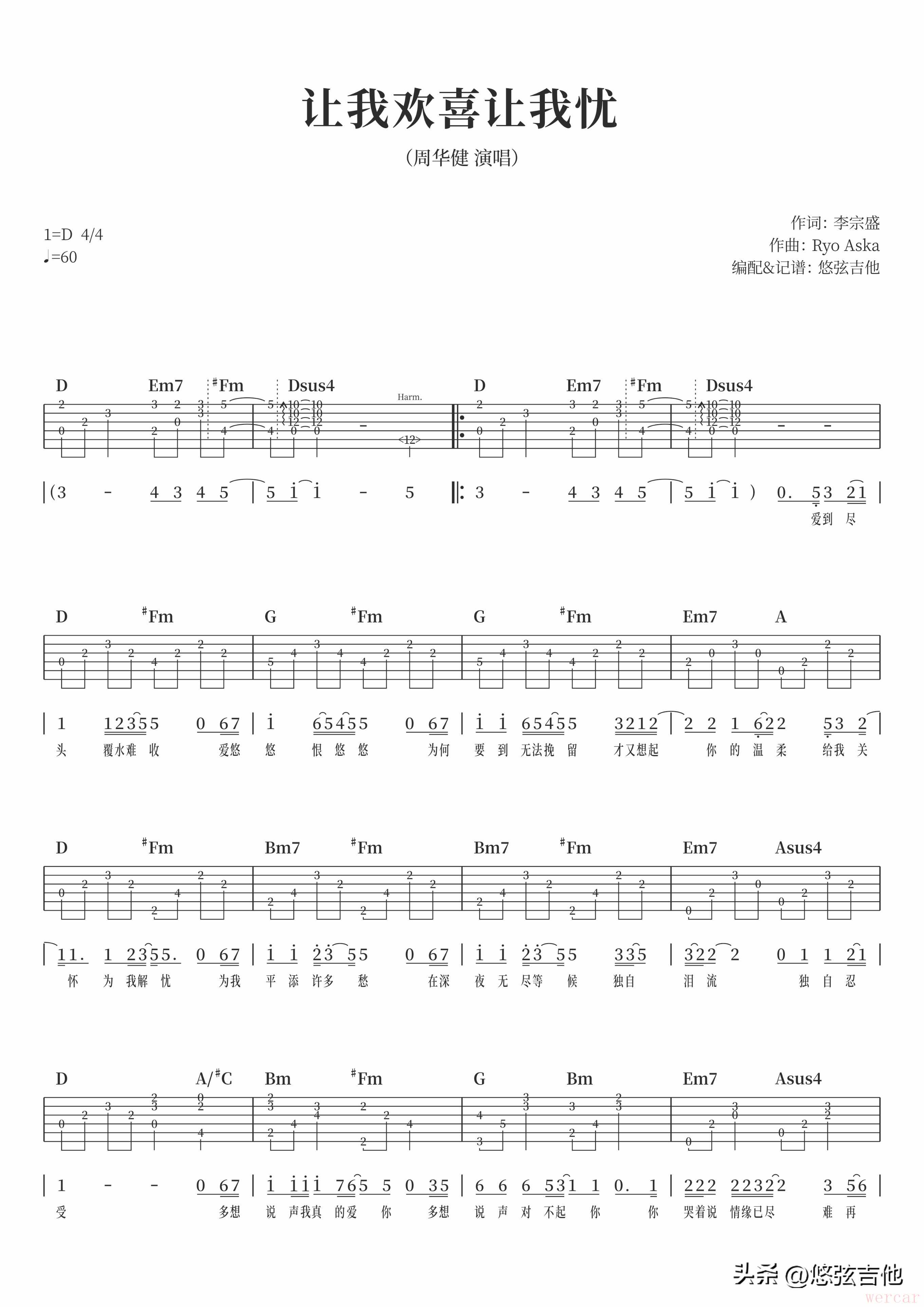 吉他弹唱必备!让我欢喜让我忧曲谱分享,带你走进经典旋律的世界