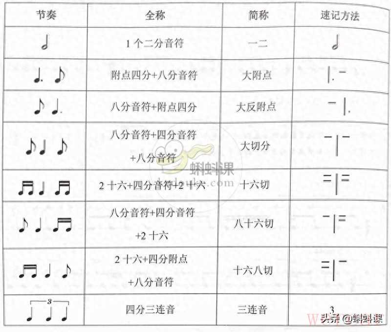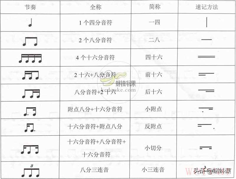 节奏型:具有典型意义和特点的不同时值音的组合。