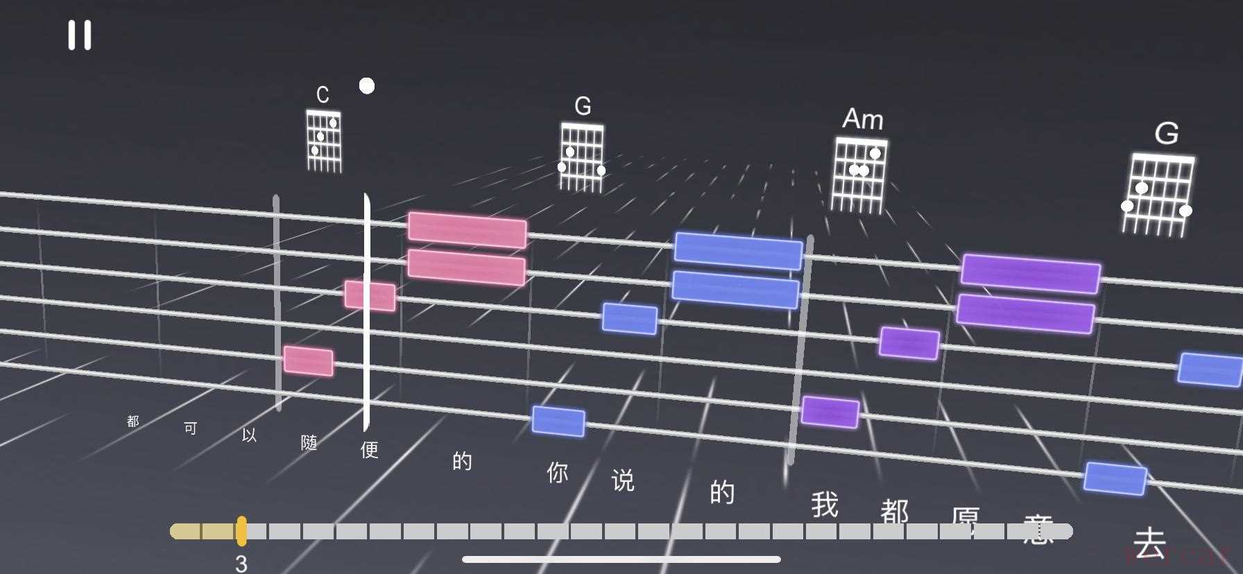 实际上,就是相当于在玩游戏的过程中,就慢慢的学会了弹奏吉他的细节。有人问,领悟比较慢怎么办?没关系,APP中的测试环节,速度可以调到慢的模式,完全不必担心上手困难的问题。