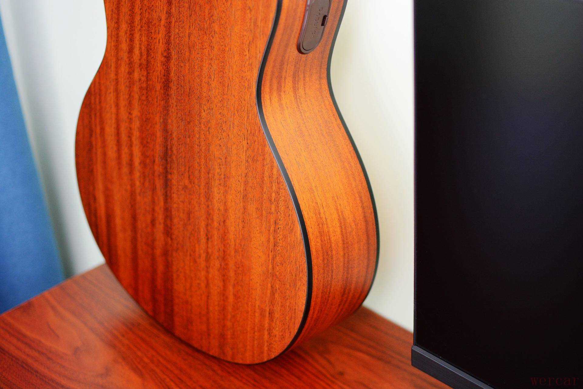 经过制作时的工艺细致而优秀,表面加入了亚光喷涂,所以看起来充满了色泽,每一次抚摸琴身都是一种享受,很棒。