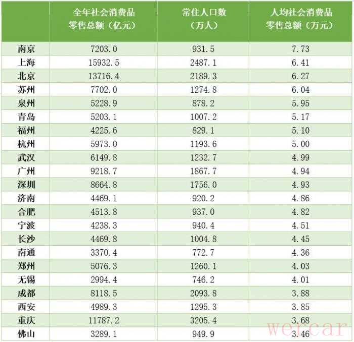 "南京的突出表现":在顶尖经济体量城市中,南京的人均消费能力非常强。