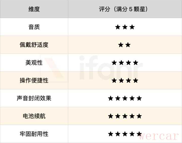 最后,我们回顾一下上述几个方面,以单项满分五颗星的方式,对这些项维度进行评分。