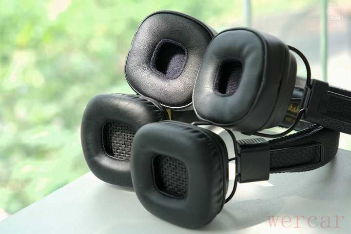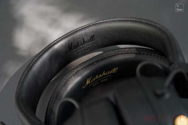 从上文的图片中,你可能一经发现了,它是压耳式而非包裹式的耳机。压耳式的耳机舒适性肯定不如包裹式,不管它的材料有多么柔软。但说到材料,这一代的 Marshall Major,在用料上比上一代有了很大改进。与耳朵接触的皮面触感上柔软很多,纹理也改为「小荔纹」。单元上方的覆膜(防尘网),也由上代的亚麻材料改成了柔软的织布。