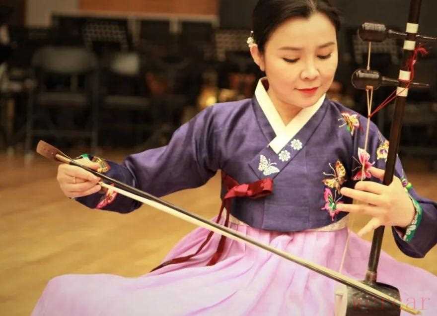 奚琴:奚琴“本胡乐也,其制而两弦间以竹片轧之。”《文献通考》亦载:“奚琴,胡中奚部所好之乐,出于奚鼗,而形亦类焉。其制两弦间以竹片轧之,民间或用。”《高丽史·乐志》中奚琴被称做嵇琴,列入俗乐部。奚琴自传到朝鲜半岛以后一直被用于俗乐的演出。奚琴琴体的制作材料为竹,张两根琴弦,琴筒共鸣箱扁圆,琴弓为竹子制成。