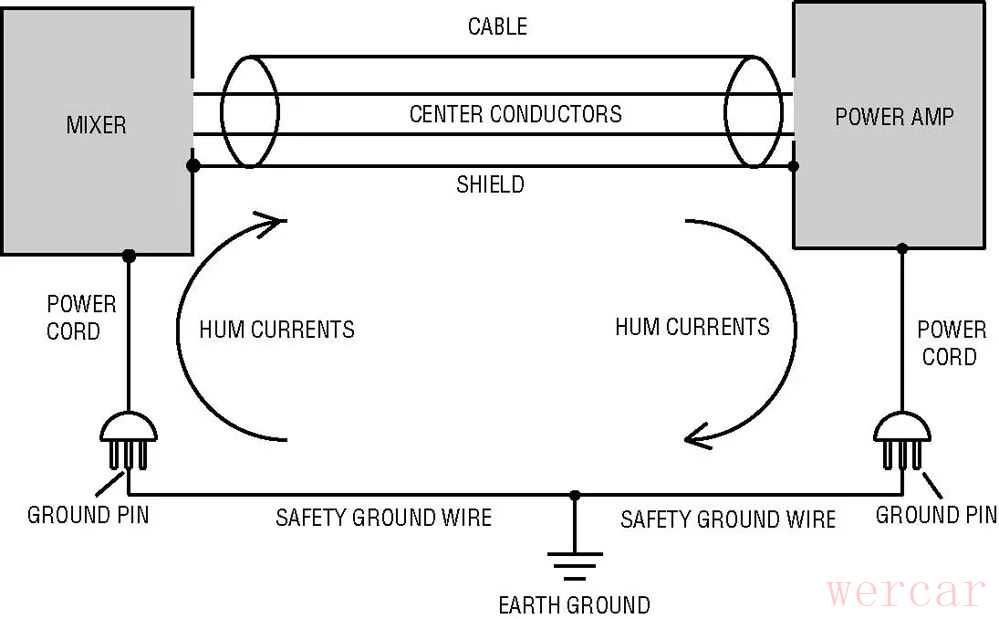 音响系统的每个组件都在内部产生自己的地面。此地通常称为音频信号接地 signal ground.。