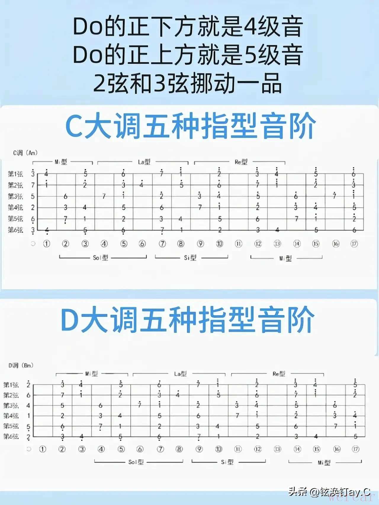 经常刷到吉他老师教指型音阶的视频,一开始时候总有一个疑惑:咋就变调了呢?