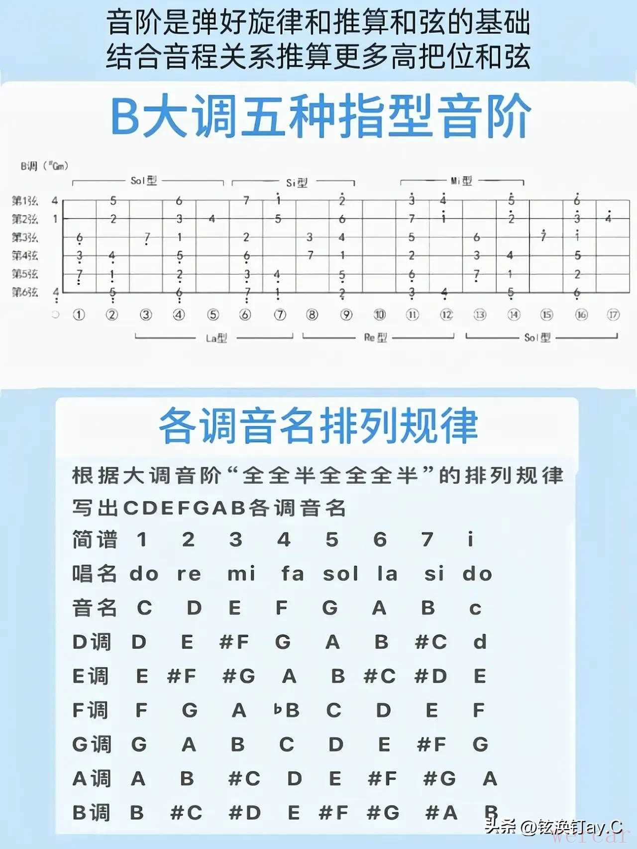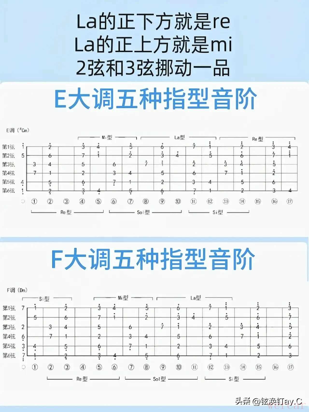 最近在练习吉他指板音阶时,悟了。原来平移指型音阶变调的原理也很简单。我感觉对自学吉他乐理有很大帮助,发出来供大家探讨交流。