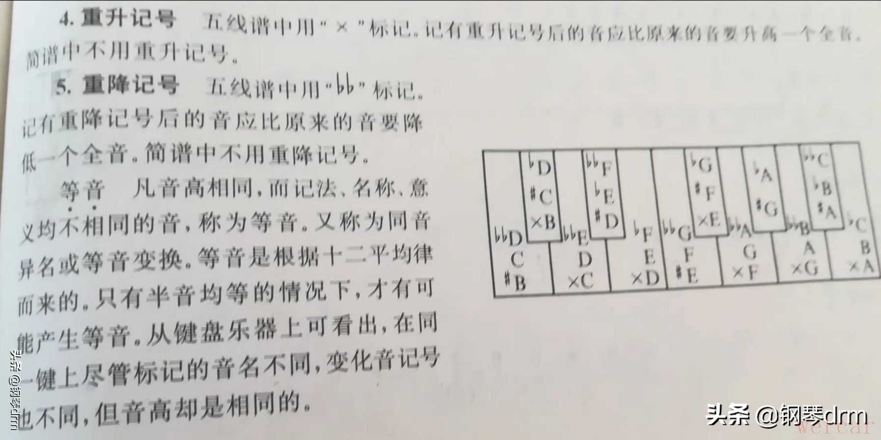 1 半音:半音是十二平均律中音与间的最小音高距离,在键盘乐器上,任何相邻的两键之间的距离均为半音。