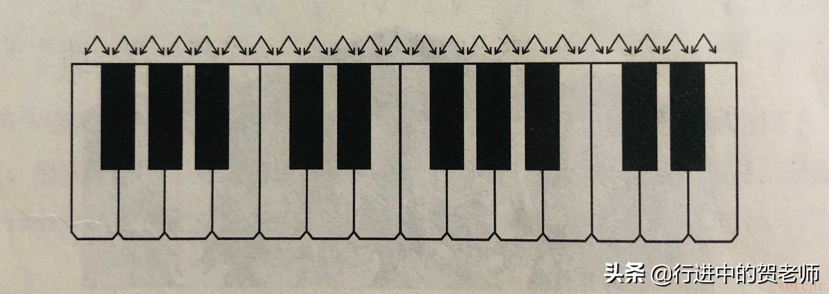两个半音的和就是全音,如在钢琴琴键上由隔开一个琴键的两个音构成