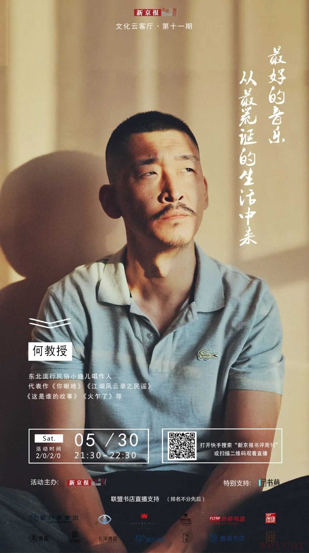 21:30,新京报·文化云客厅系列直播第十一期,我们到唱作音乐人何教授在新京报书评周刊快手直播间与你分享音乐创作如何与荒诞生活勾连:音乐能否抵抗生活的荒诞?普通人如何与生活和解?