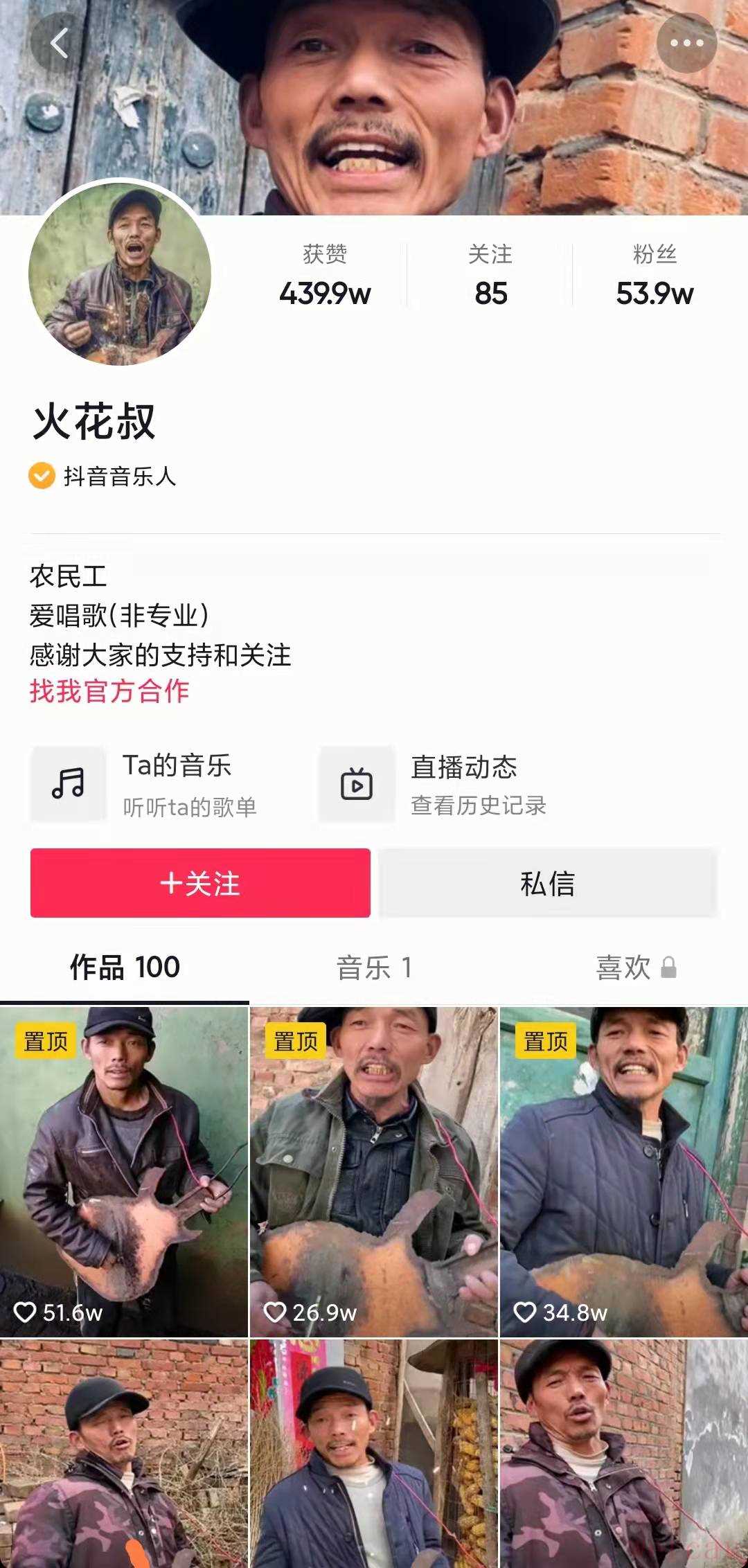 靠着一把“火花吉他”,耿海生在短视频平台走红,置顶视频有200多万的浏览量和50多万的点赞。到现在他在某短视频平台已经拥有了53.9万的粉丝和439.9万的点赞。走红之后,耿海生的生活并没有发生什么变化,他还和往常一样在工地干活,每天早上6点上班,晚上七点下班。