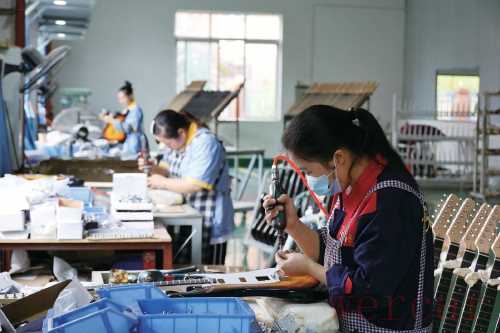 正安·国际吉他园内吉他制作工人正在制作吉他。 丁愉愉 摄