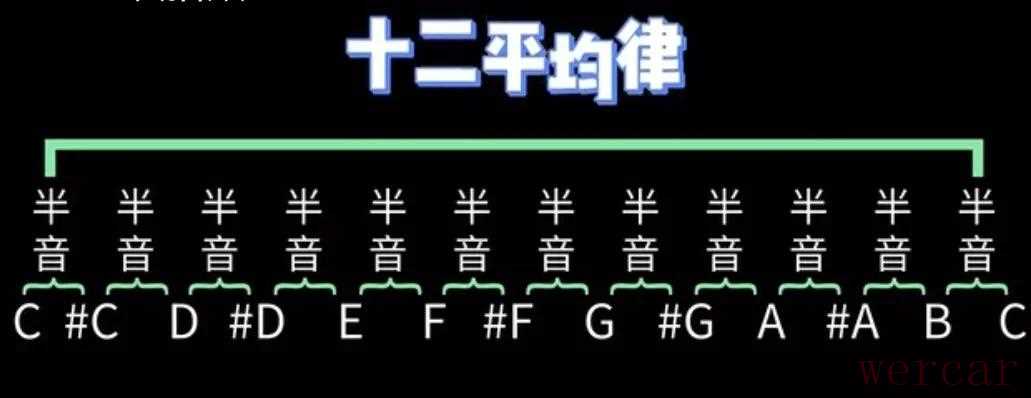 4、然后了解下12平均律,以C大调音阶CDEFGABC为例,EF、BC之间是半音,其他是全音。吉他一个品格是半音,2个品格是全音,可以由每根弦的空弦音,用最笨的方法推导出每个指板的音。