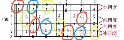 纯四度时,1下面是4,2下面是5,3下面是6,71下面是34。