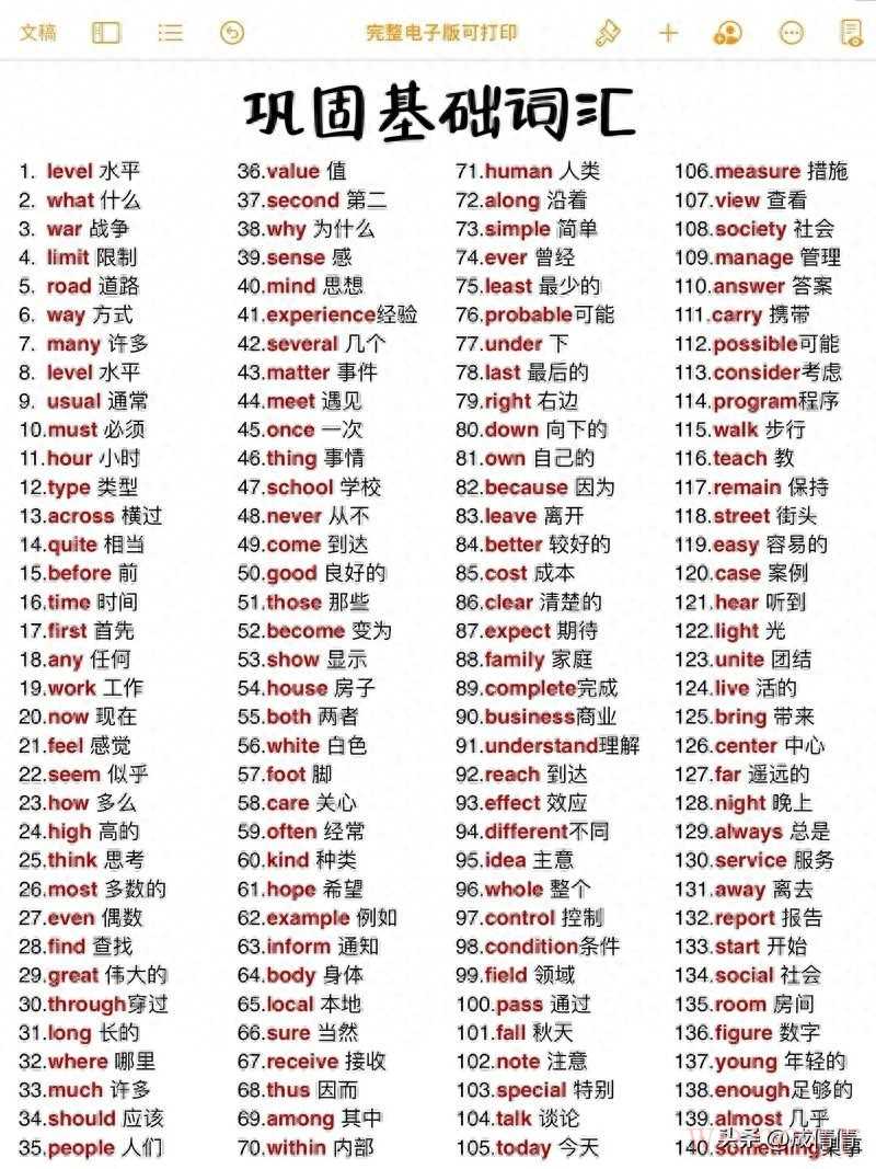 这是一份适合初级英语学习者的约700个核心单词表。这些单词涵盖了基础语法、日常交流、常见事物和概念,是构建英语基础的重要词汇。