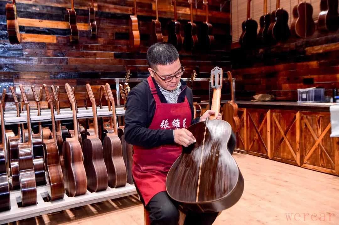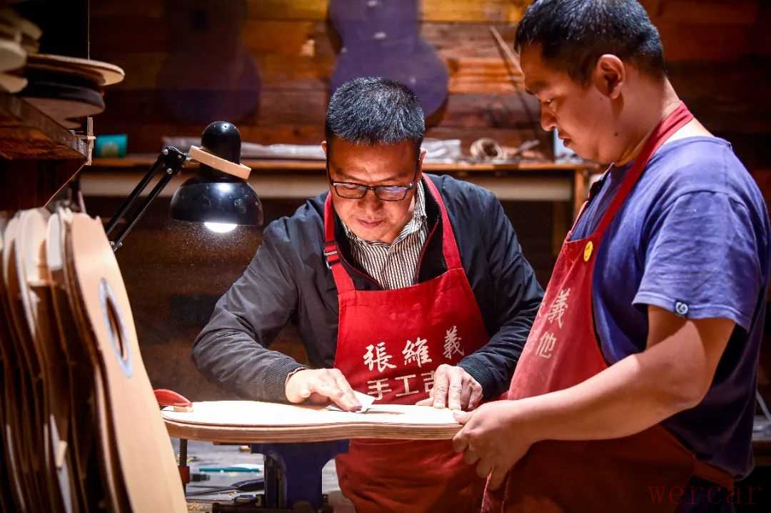 对待吉他制作,他的要求近乎严苛。手工吉他每一道工序都要精心打磨,细致到微毫。从原材料选购到琴头制作、音梁制作、拼板,再到擦油漆、装配,需要200多道工序,正如张维义所说,“制作一把有生命的吉他”。