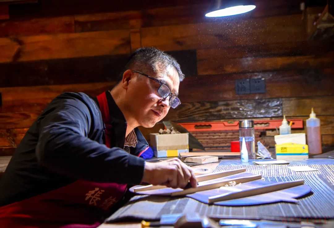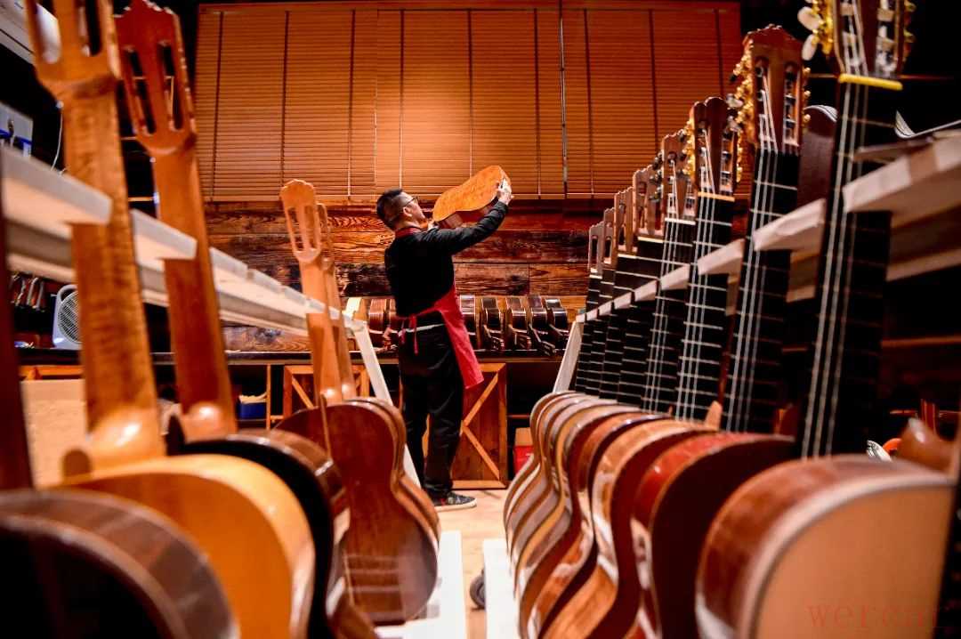走进正安吉他产业园大师工作室,张维义正在制作手工吉他。2019年,张维义获首届中国吉他制作大赛古典吉他组冠军。同年受邀到正安开设手工制琴工作室,从此开启了正安吉他之旅。