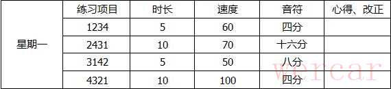 六、给你规划一个练琴计划表的模板,你可以根据自己的情况来做一些修改,并指导自己练习。