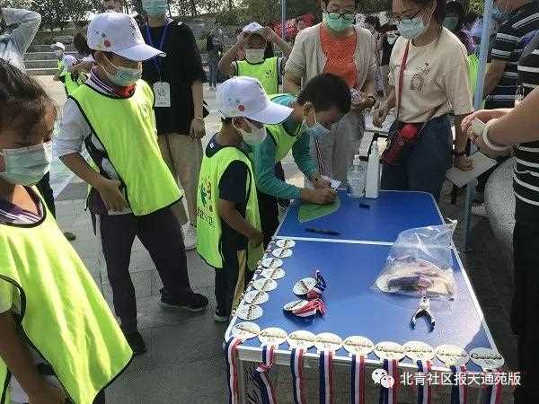 活动当日,广场上一批统一穿着“京北小卫士”马甲、戴着志愿标识帽子的小朋友,秩序井然地站成一排。随后,由老师带领小朋友学习《垃圾分类》歌舞以及如何利用废纸箱制作简易“尤克里里”,完成任务的“京北小卫士”便可获得荣誉勋章。