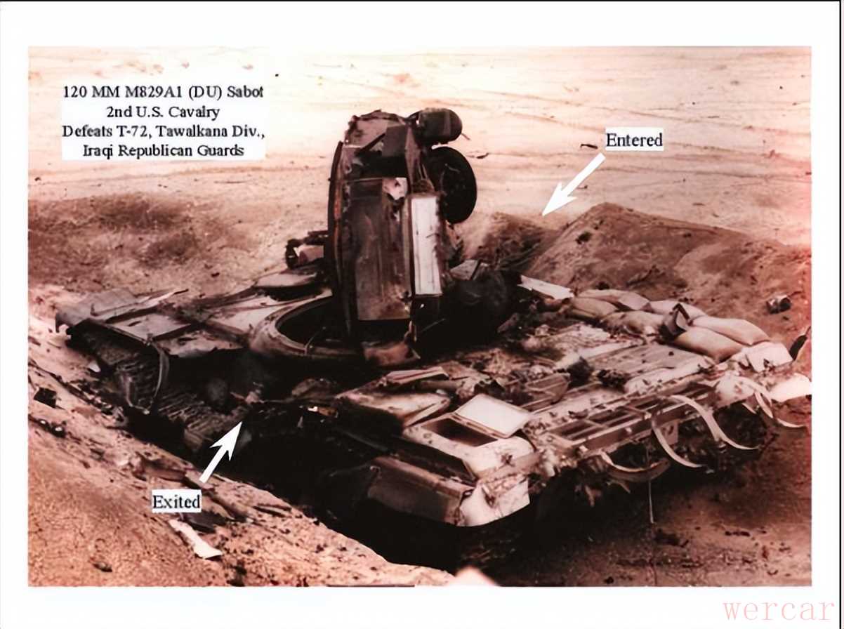 ▲被美军贫铀弹击毁的伊拉克T-72坦克