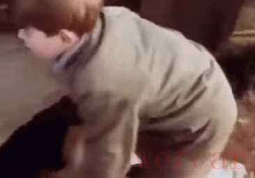 犬舍的门打开后,两个小男孩瞬间被狗淹没。爱德华拍着一只小狗的背,大喊:"这只是我的!"。